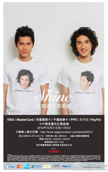 Shine 紅館演唱會 2012, 演出日期: 2012年12月31日 - 1月1日 (共2場), 門票價錢: HK$500 / $300 / $200, 演出場館: 紅磡香港體育館, 優先購票: 2012年10月31日 AEGPROMOTION, 公開發售: 2012年11月14日 URBTIX