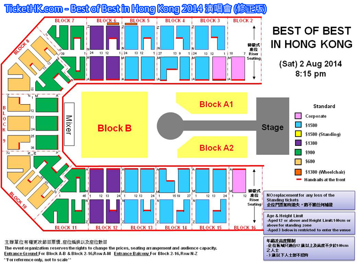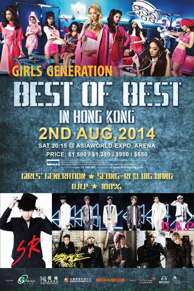 Best of Best in Hong Kong 2014 演唱會, 演出日期: 2014年8月2日 (星期六), 門票價錢: HK$1580 / $1380 / $980 / $680, 演出場館: 亞洲國際博覽館 Arena, 公開發售: 2014年7月4日 HKTICKETING