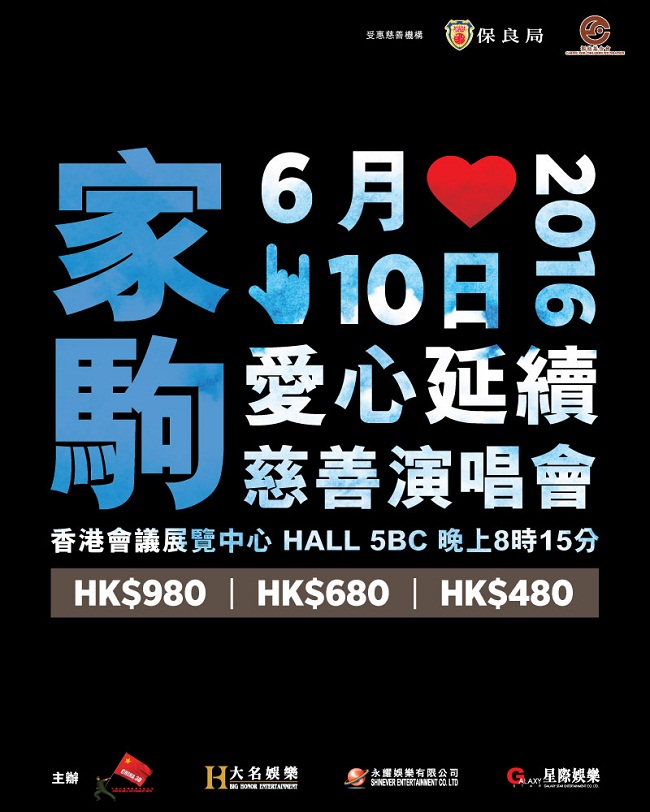 Beyond 演唱會 2016, 演出日期: 2016年6月10日 (星期五), 門票價錢: HK$980 / $680 / $480, 演出場館: 紅磡香港體育館, 公開發售: 2016年4月20日10:00起 HKTICKETING