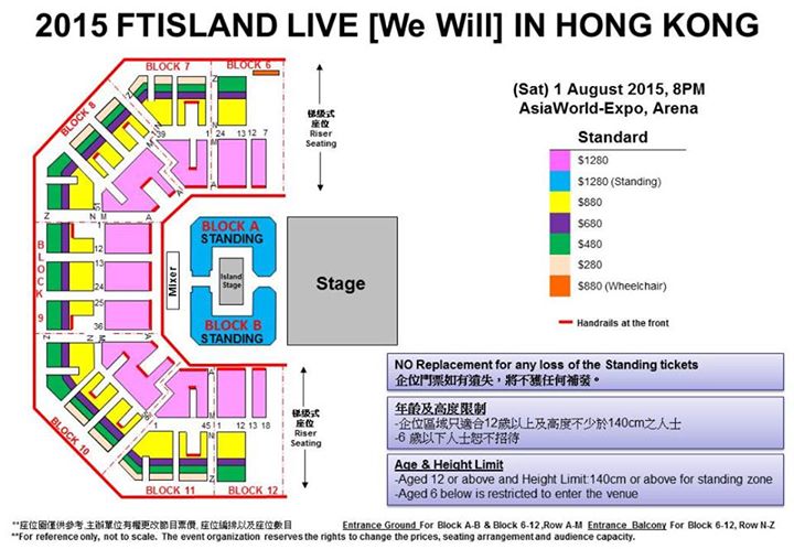 FTIsland 香港演唱會 2015, 演出日期: 2015年8月1日 (星期六), 門票價錢: HK$1280 / $880 / $680 / $480 / $280, 演出場館: 亞洲國際博覽館 Arena, 公開發售: 2015年6月19日 HKTICKETING