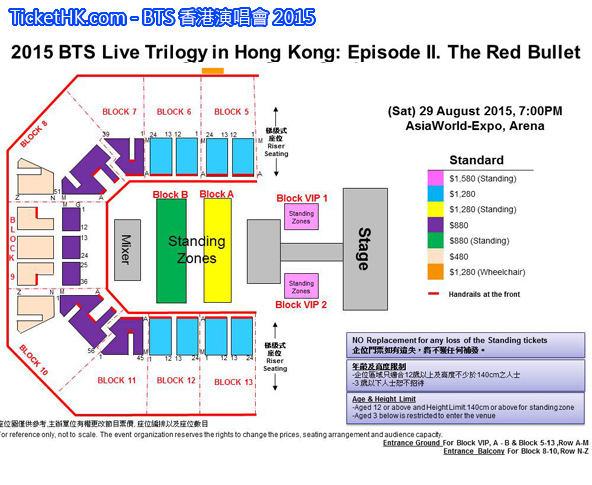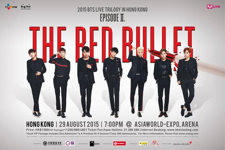 BTS 香港演唱會 2015, 演出日期: 2015年8月29日 (星期六), 門票價錢: HK$1580 / $1280 / $880 / $480, 演出場館: 亞洲國際博覽館 Arena, 公開發售: 2015年7月15日 HKTICKETING