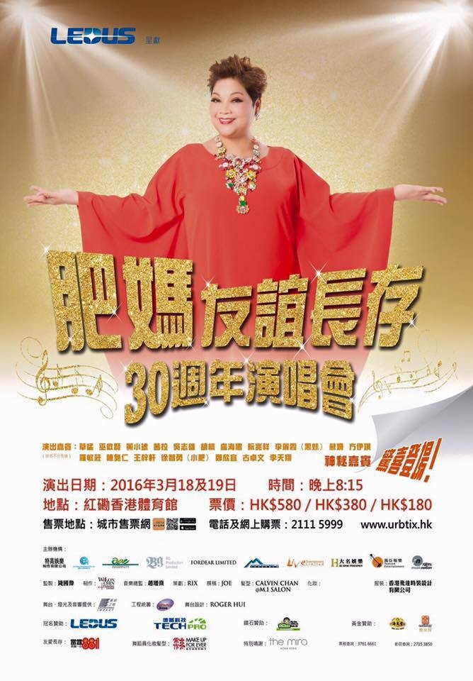 肥媽 演唱會 2016 門票價錢及公開發售時間