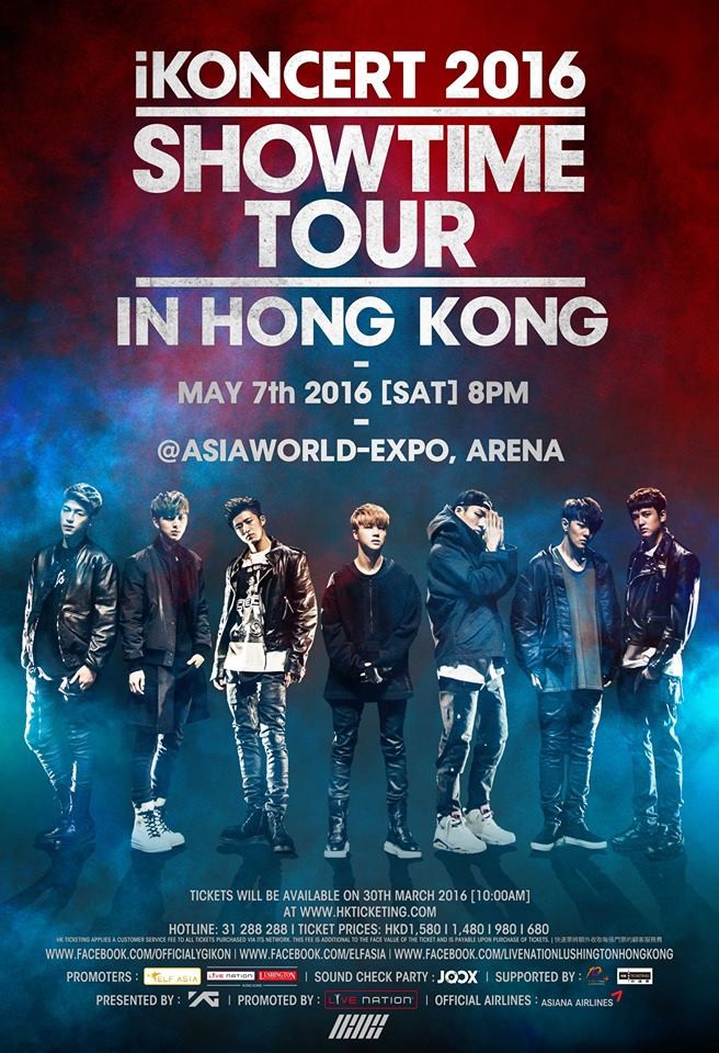 韓國大勢男團「怪物新人」 iKON霸氣襲港,舉行其首個香港演唱會「iKONCERT 2016 [SHOWTIME] in HONG KONG」,誓要將多年練習生生涯及經過兩次殘酷出道真人秀節目積累的過人實力,毫無保留地呈現在香港粉絲面前!香港iKONICs,一起見證iKON首個世巡的誕生吧!