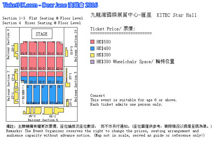 Dear Jane 演唱會 2016, 演出日期: 2016年9月3日 - 4日 (共2場), 門票價錢: HK$580 / $480 / $380, 演出場館: 九龍灣國際展貿中心匯星 Star Hall, 優先購票: 2016年7月19日 , 公開發售: 2016年7月26日 HKTICKETING