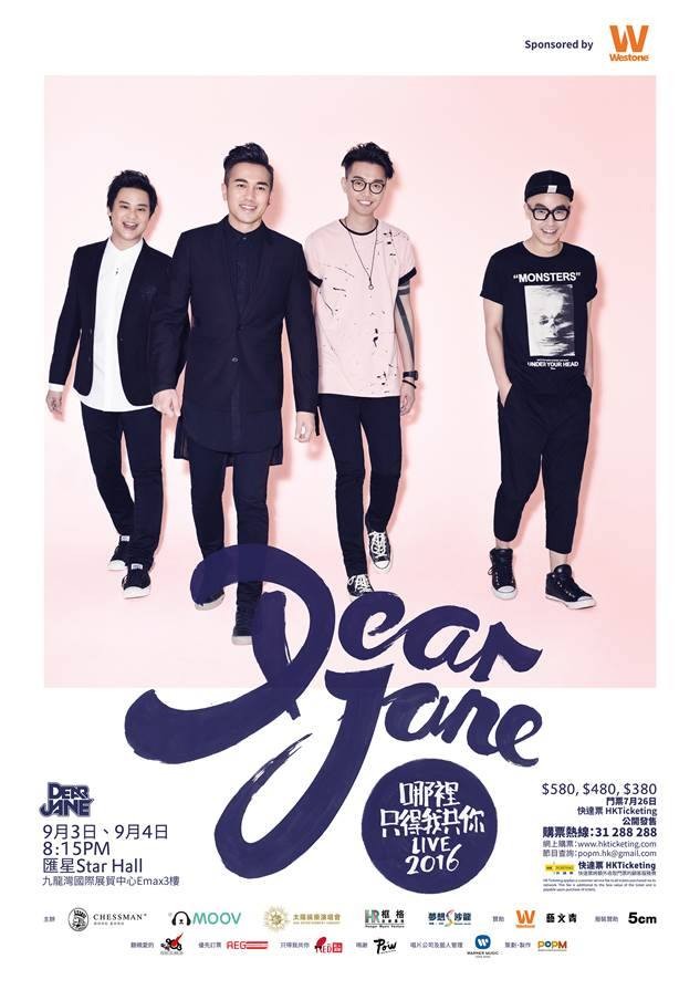 Dear Jane 演唱會 2016 門票價錢及公開發售時間