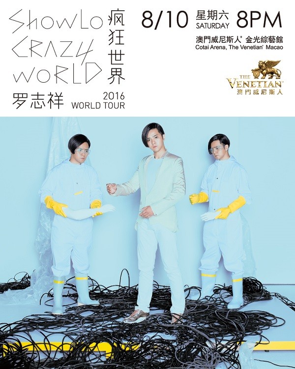 被譽為華語樂壇「舞王」的羅志祥將第六度[LC1] 載譽回歸澳門威尼斯人®的金光綜藝館,於2016年10月8日(星期六)強勢帶來威力無比的《羅志祥瘋狂世界—澳門站》。 門票將於9月15日下午2時透過金光票務售票處公開發售。