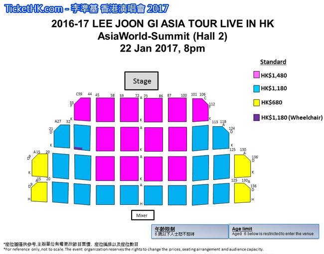李準基 香港演唱會 2017, 演出日期: 2017年1月22日 (星期日), 門票價錢: HK$1480 / $1180 / $680, 演出場館: 亞洲國際博覽館 Arena, 公開發售: 2016年12月19日 HKTICKETING