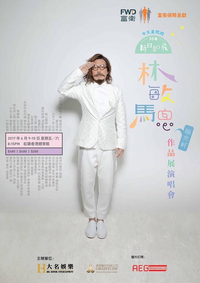林敏驄 作品展演唱會 2017, 演出日期: 2017年6月9日 - 10日 (共2場), 門票價錢: HK$680 / $480 / $280, 演出場館: 紅磡香港體育館, 優先購票: 2017年3月27日 , 公開發售: 2017年4月7日 URBTIX