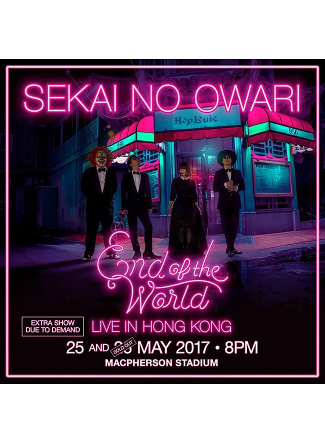 SEKAI NO OWARI 世界末日 演唱會 2017 加場公開發售
