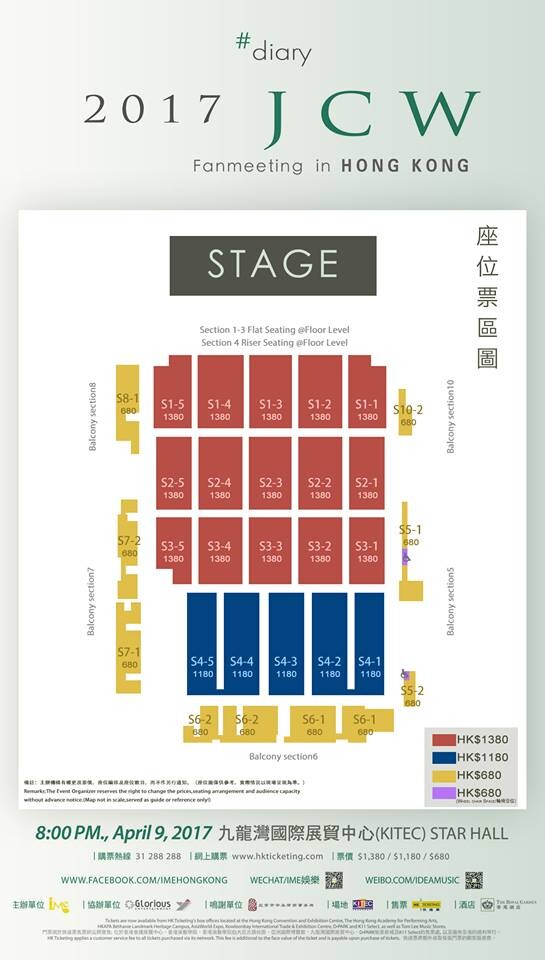 池昌旭 香港粉絲見面會 2017, 演出日期: 2017年4月9日 (星期日), 門票價錢: HK$1380 / $1180 / $680, 演出場館: 九龍灣國際展貿中心匯星 Star Hall, 公開發售: 2017年2月28日10:00起 HKTICKETING