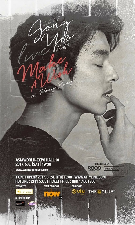 孔劉 香港粉絲見面會 2017, 演出日期: 2017年5月6日 (星期六), 門票價錢: HK$1480 / $780, 演出場館: 亞洲國際博覽館 (10號展館), 公開發售: 2017年3月24日10:00起 Cityline
