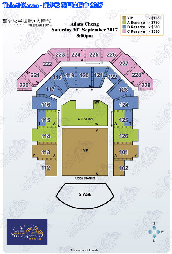鄭少秋 澳門演唱會 2017, 演出日期: 2017年9月30日 (星期六), 門票價錢: HK$1080 / $780 / $580 / $380, 演出場館: 澳門威尼斯人金光綜藝館, 公開發售: 2017年8月10日