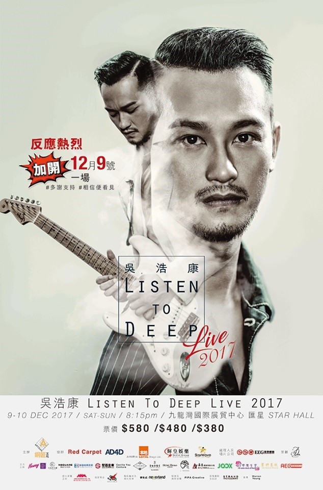 多謝各位客戶的支持,是次「吳浩康 Listen To Deep Live 2017」優先訂票反應熱烈,現決定加開2017年12月9日一場!