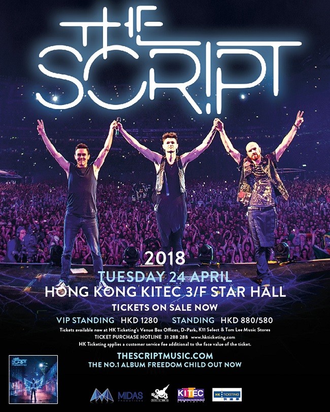 Midas Promotions 興奮地宣佈,The Script將自2011年後,再次把他們的演唱會伴隨最新冠軍大碟《Freedom Child》帶到香港。