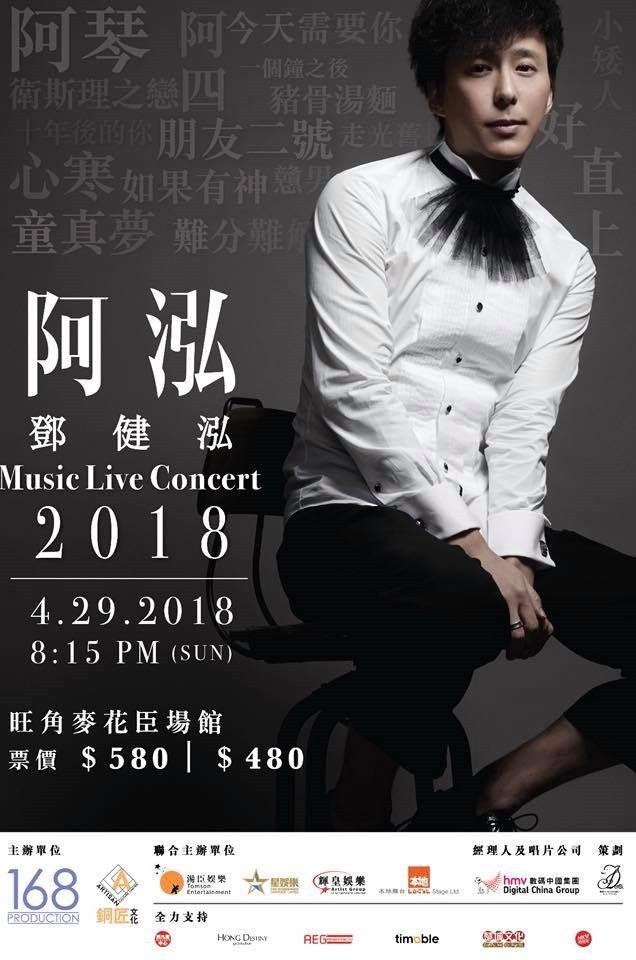 集影、視、舞台劇演員於一身的鄧健泓 ( Patrick ),亦為全能音樂人兼創作歌手,過往曾創作過不少耳孰能詳的年代金曲,讓人琅琅上口。 久別樂壇多年的阿泓今年將會重新出發,帶著對音樂的那一團火,藉著是次的音樂會,勇敢唱出自己對大家、對音樂的承諾。 《阿泓 鄧健泓 Music Live Concert 2018》將於 4 月 29 日假旺角麥花臣場館舉行, 就請所有人見證,鄧健泓再以歌手身份,證明自己;以音樂,作出最響亮的承諾。