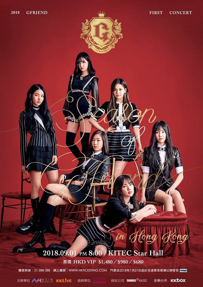 GFRIEND 香港演唱會 2018, 演出日期: 2018年9月1日 (星期六), 門票價錢: HK$1480 / $980 / $680, 演出場館: 九龍灣國際展貿中心匯星 Star Hall, 公開發售: 2018年7月27日 HKTICKETING