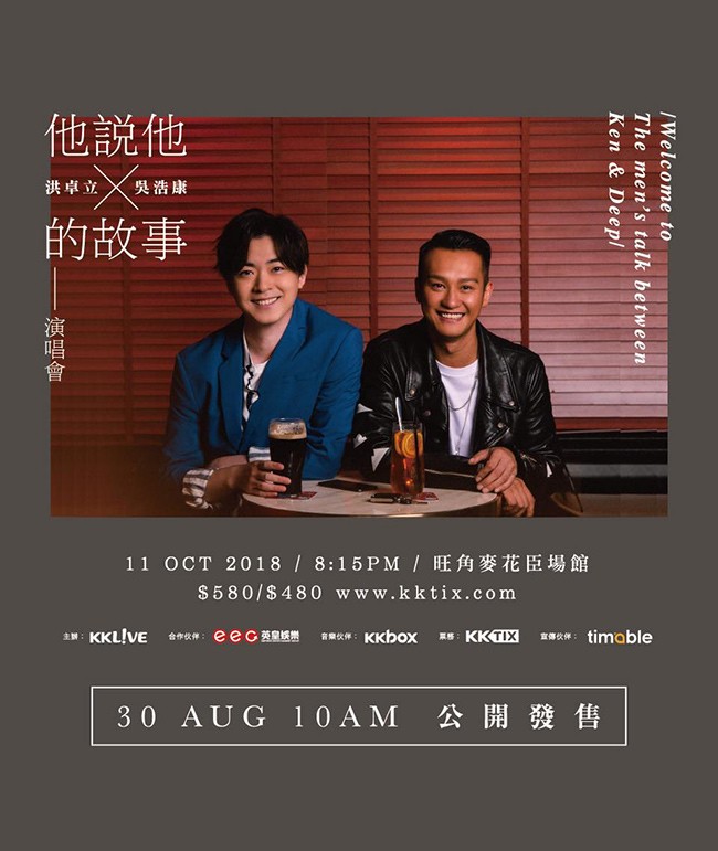 洪卓立 吳浩康 演唱會 2018 門票價錢及公開發售時間