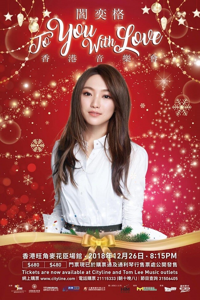 閻奕格 演唱會 2018, 演出日期: 2018年12月26日 (星期三), 門票價錢: HK$680 / $480, 演出場館: 旺角麥花臣場館, 公開發售: 2018年11月13日 Cityline
