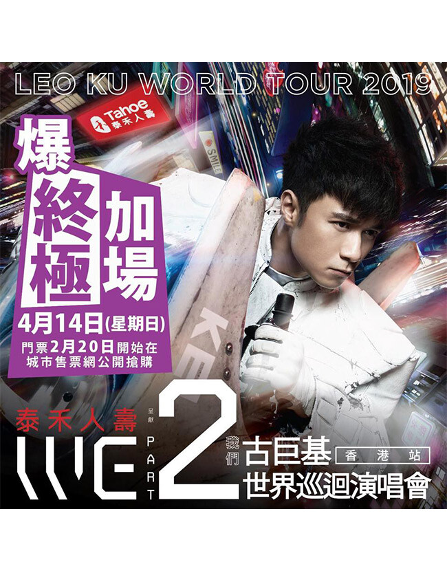 古巨基 紅館演唱會 2019, 演出日期: 2019年4月11日 - 14日 (共4場), 門票價錢: HK$780 / $480 / $280, 演出場館: 紅磡香港體育館, 優先購票: 2018年12月18日 Cityline, 公開發售: 2019年1月15日 URBTIX