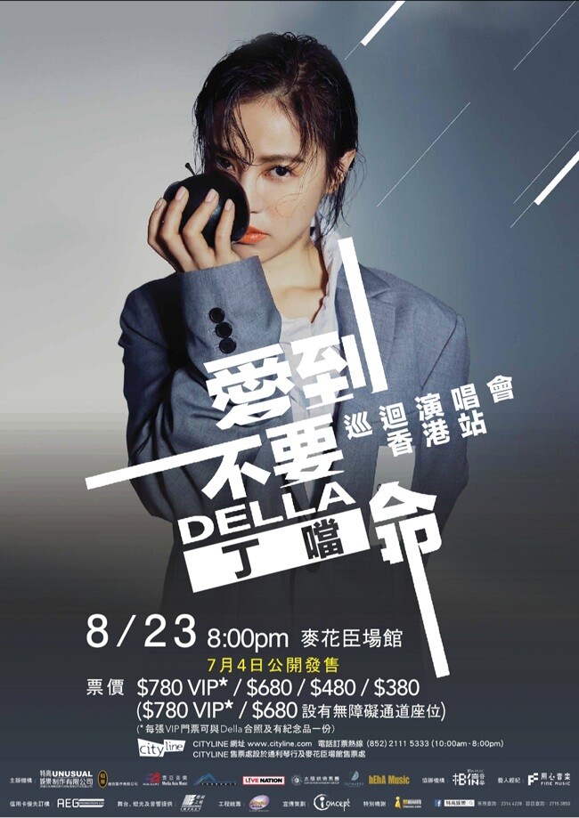 丁噹 香港演唱會 2019, 演出日期: 2019年8月23日 (星期五), 門票價錢: HK$780 / $680 / $480 / $380, 演出場館: 旺角麥花臣場館, 優先購票: 2019年7月3日 , 公開發售: 2019年7月4日10:00起 Cityline