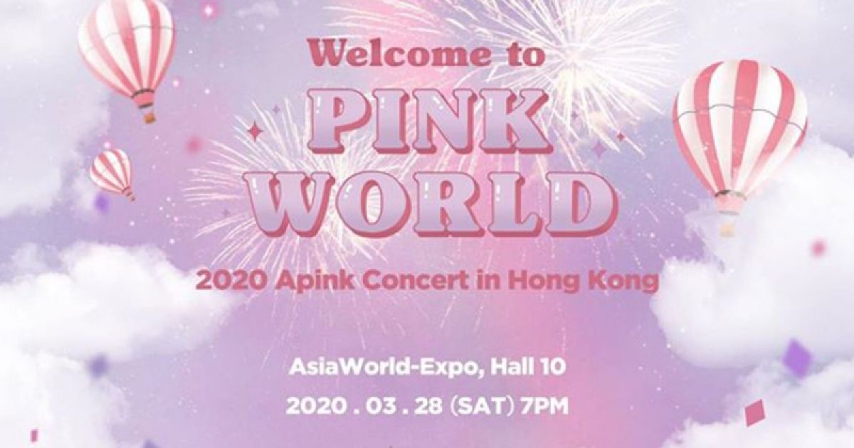 因考慮到2019年冠狀病毒疾病疫情,為確保觀眾與演出人員的健康安全,原定於2020年3月28日在亞洲國際博覽館Hall 10舉行的《Welcome to PINK WORLD 2020 Apink Concert in Hong Kong》將延期至另行通知。