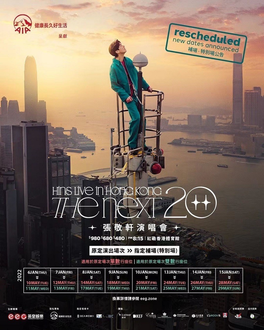 張敬軒將於今年12月23-27, 30-31 及 1月1-3日於紅館舉行十場《AIA 呈獻The Next 20 Hins Live in Hong Kong 張敬軒演唱會 》,慶祝入行二十週年。今次軒仔先選擇攀登上位於利園一期樓頂、最高點逾246米(約64層高)的避雷針頂,拍攝宣傳照片及影片,藉行為藝術帶出一個正向訊息 : 人生每經過一次勇敢面對自己恐懼,必然可跨越過去,成就另一番新風景。」
