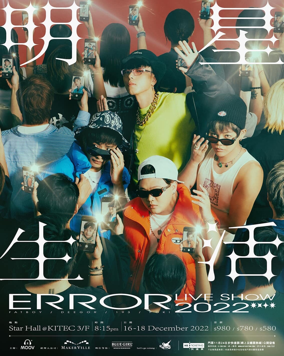 ERROR 演唱會 2022, 演出日期: 2022年12月16日 - 19日 (共4場), 門票價錢: HK$980 / $780 / $580, 演出場館: 九龍灣國際展貿中心匯星 Star Hall, 公開發售: 2022年11月24日 HKTICKETING